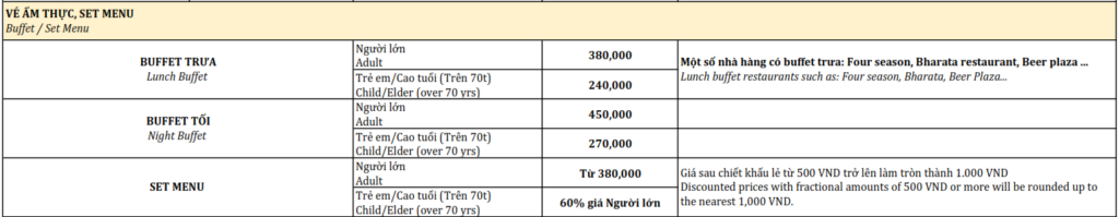 - 성인(베트남 외국인): 약 950,000 VND (한화 약 54,000원)